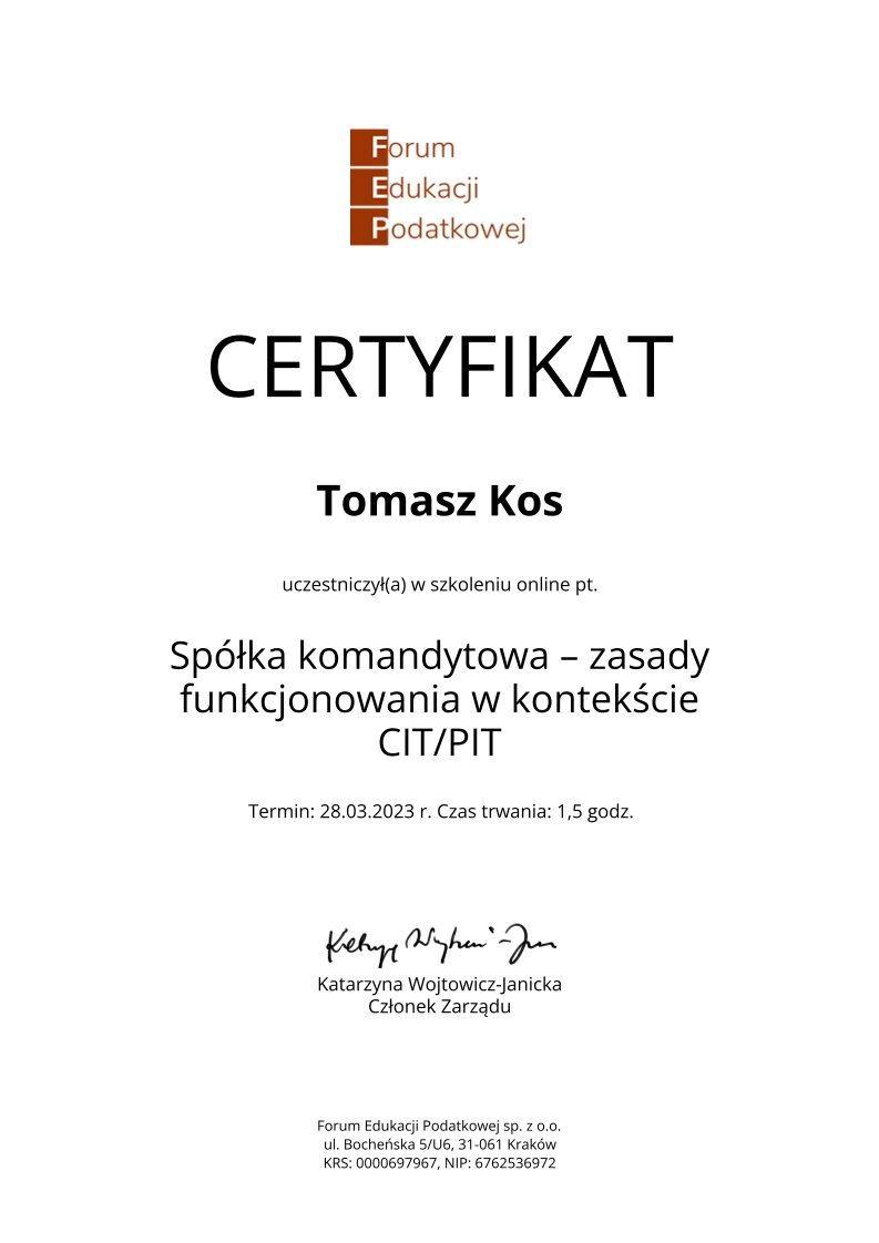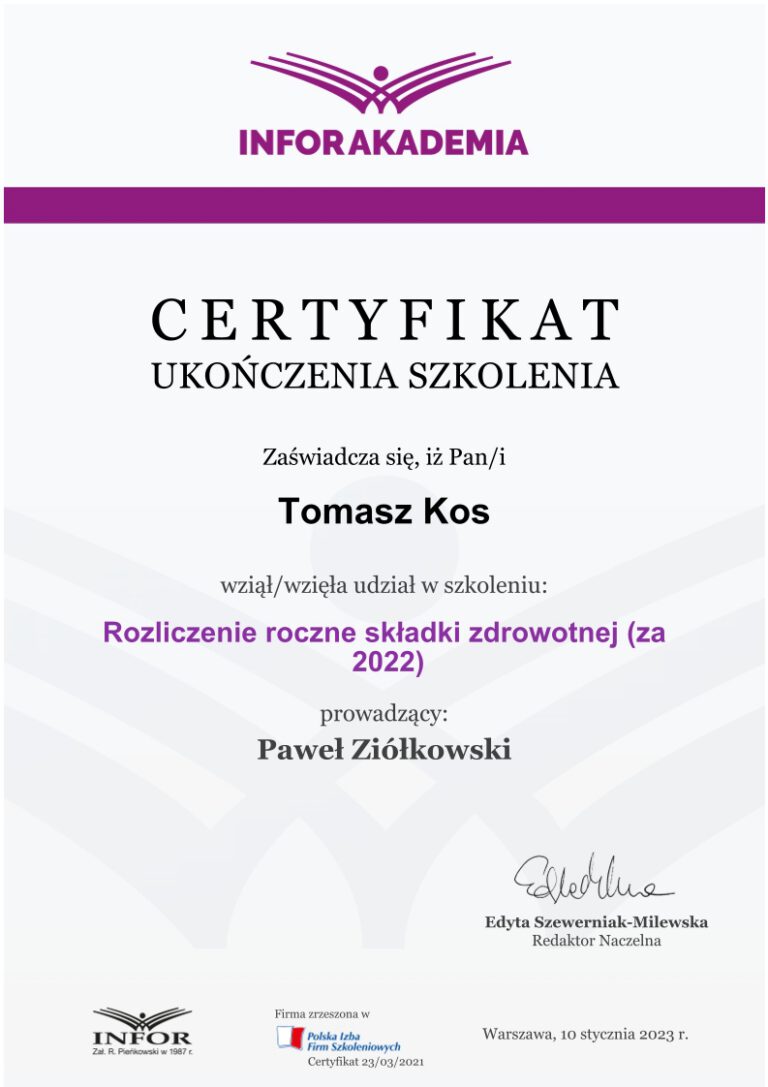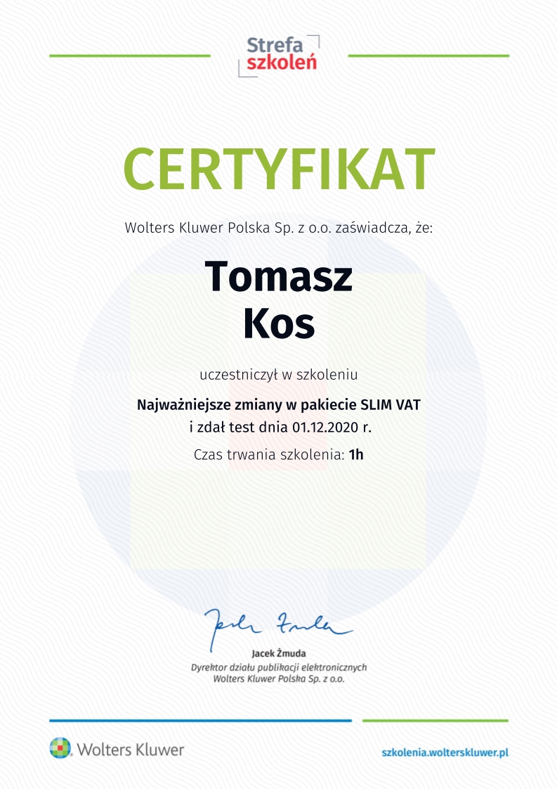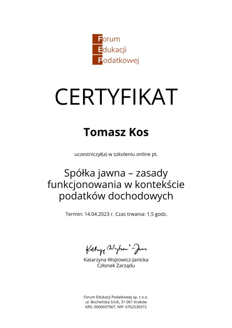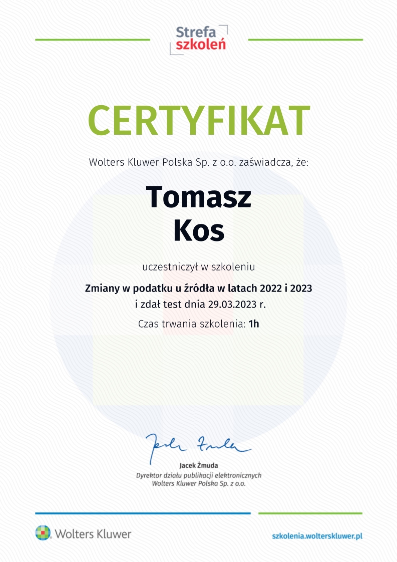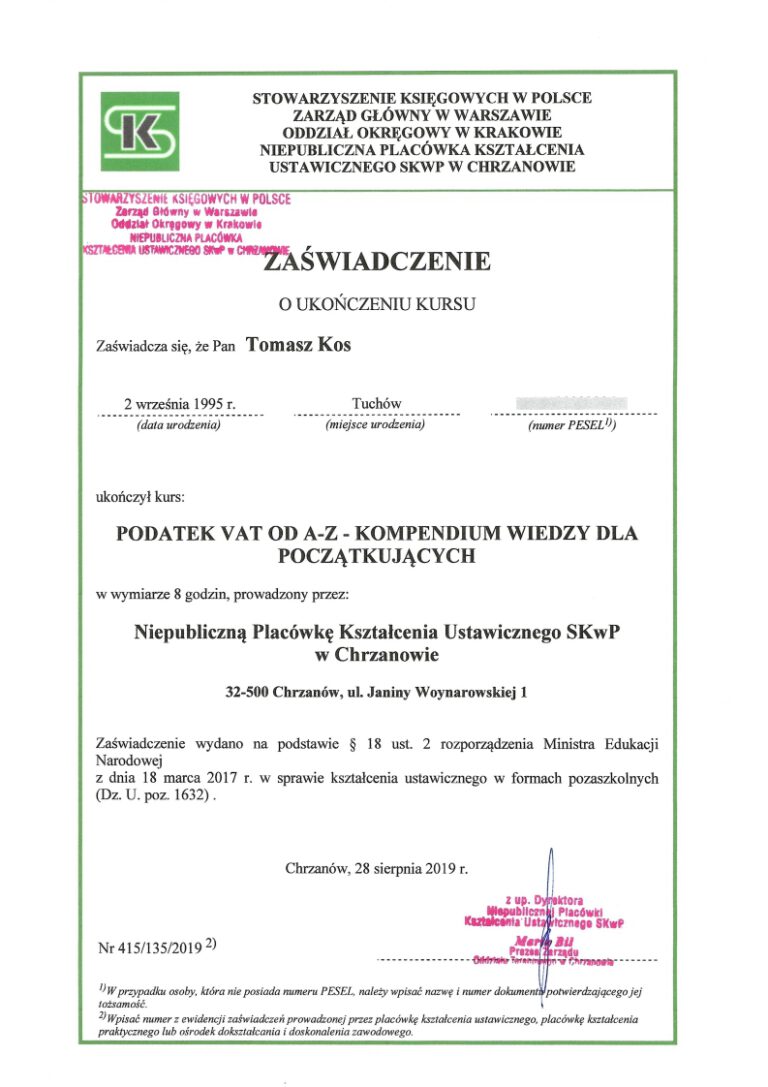Kancelaria księgowa TOMAccounter powstała w maju 2023 roku w odpowiedzi na rosnące potrzeby przedsiębiorców poszukujących rzetelnego, technologicznie zaawansowanego i indywidualnego wsparcia księgowego. Jej założycielem jest Tomasz Kos – specjalista z wieloletnim doświadczeniem w branży finansowej i rachunkowej, absolwent matematyki finansowej i aktuarialnej na Akademii Tarnowskiej oraz magister Finansów i Rachunkowości Uniwersytetu Ekonomicznego w Krakowie.