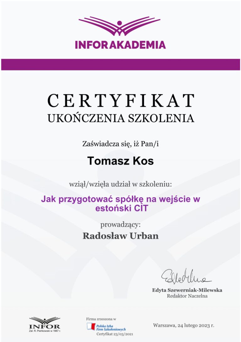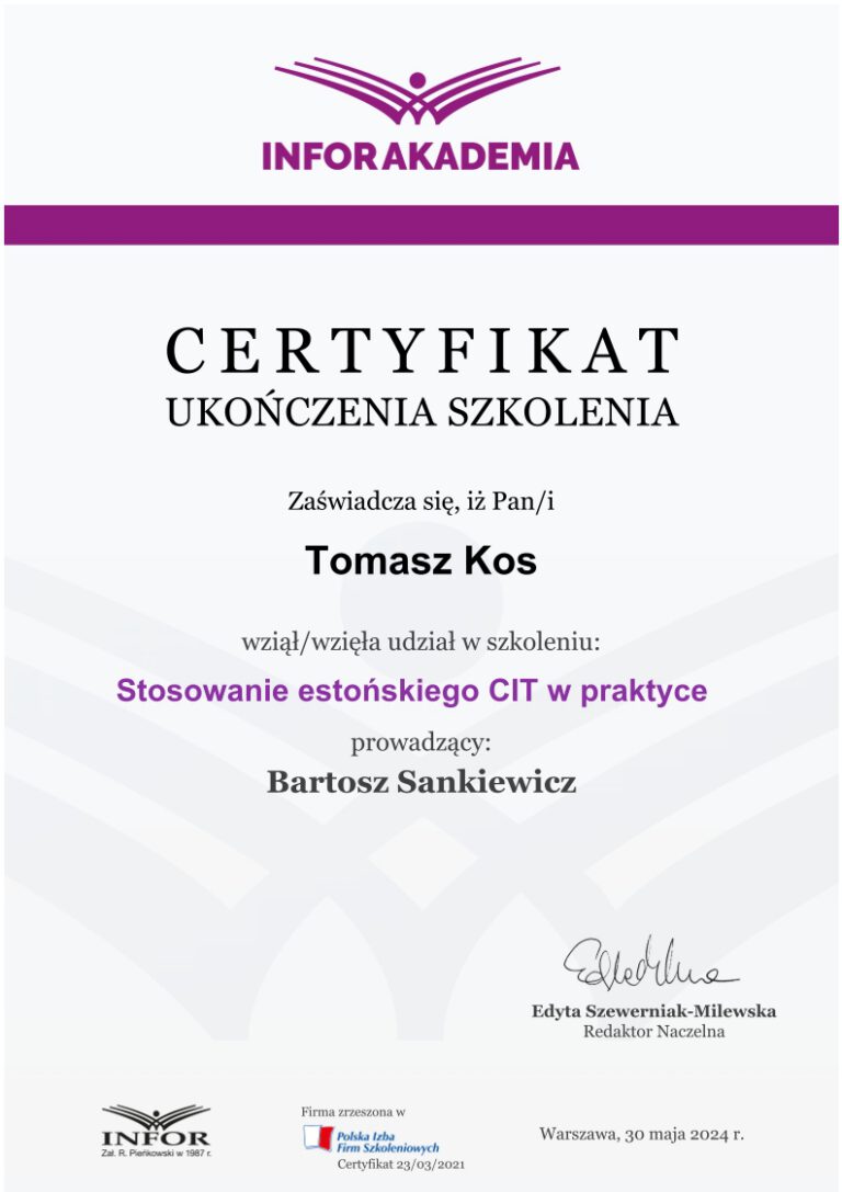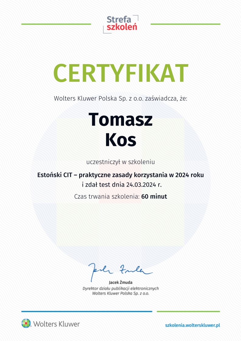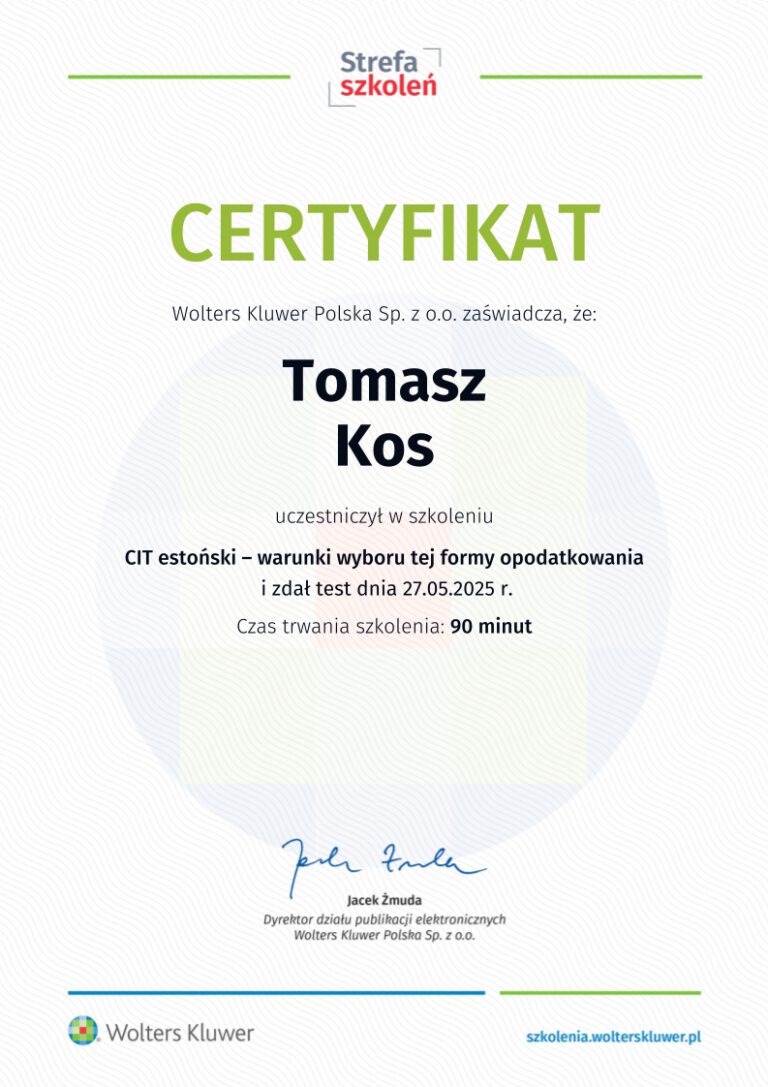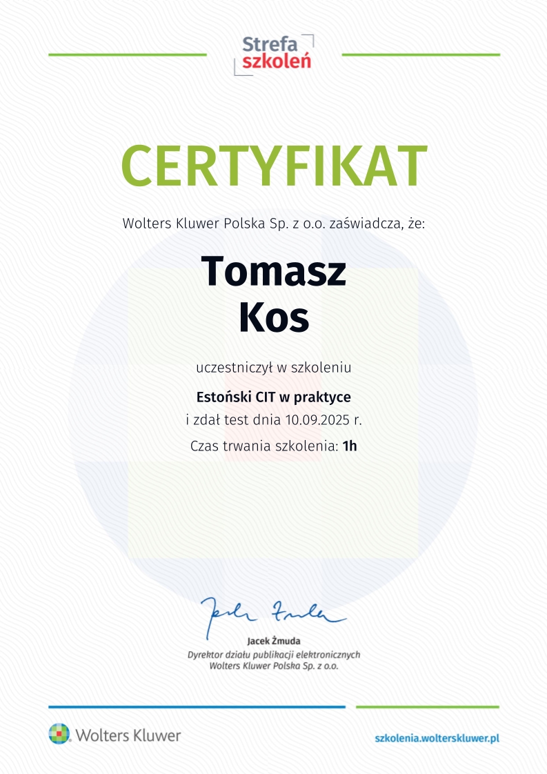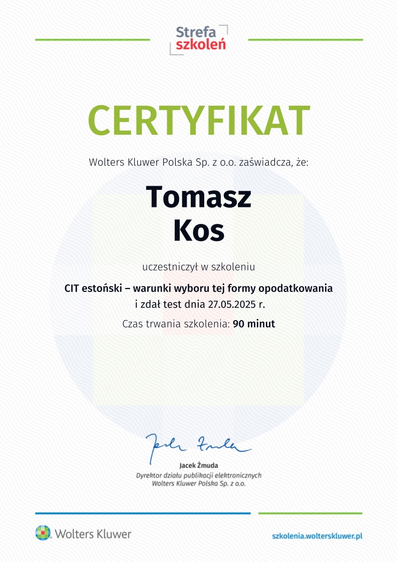 Jednym z kluczowych obszarów działalności kancelarii jest wsparcie spółek korzystających z estońskiego CIT, czyli rozwiązania, które umożliwia znaczną optymalizację podatkową i sprzyja reinwestowaniu kapitału w rozwój przedsiębiorstwa. To odpowiedź nie tylko na potrzeby rynku lokalnego, ale także na rosnące zainteresowanie tym modelem rozliczeń w skali ogólnokrajowej.